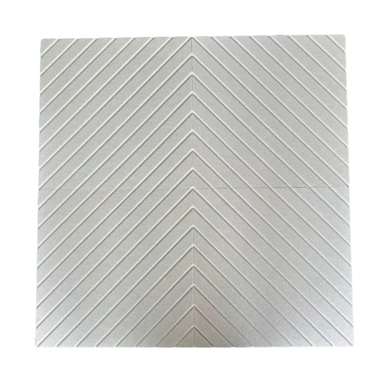Panel Akustik PET Felt PET Felt Beige V-channel kami menggunakan gentian poliester PET, bahan yang sama dengan gentian pakaian, sebagai bahan asas. Permukaan timbul dengan tekstur V-groove yang halus, yang lembut dan mesra kulit untuk disentuh. Bahagian dalamannya dipenuhi dengan pori-pori halus – apabila bunyi terkena, ia diserap tanpa pantulan atau gema, menyelesaikan masalah bunyi. Warna kuning air juga melengkapkan pelbagai gaya hiasan, memastikan pengurangan bunyi dan daya tarikan estetik!